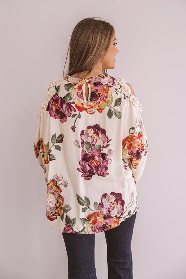Floral Debut Shift Top In Cream
