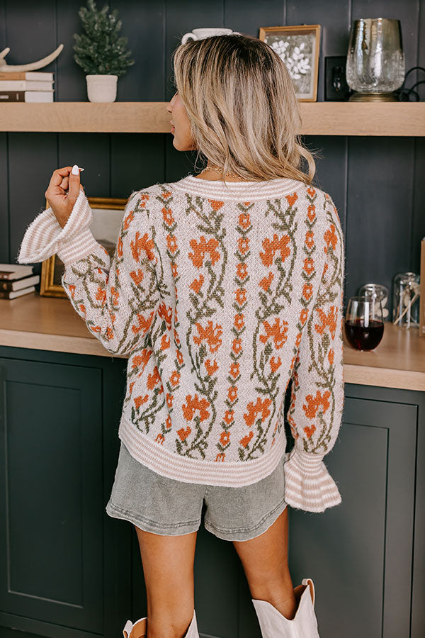 Floral Dreams Knit Sweater in Light Oatmeal