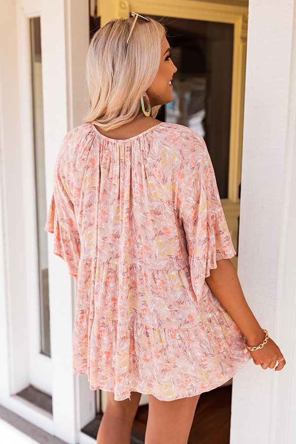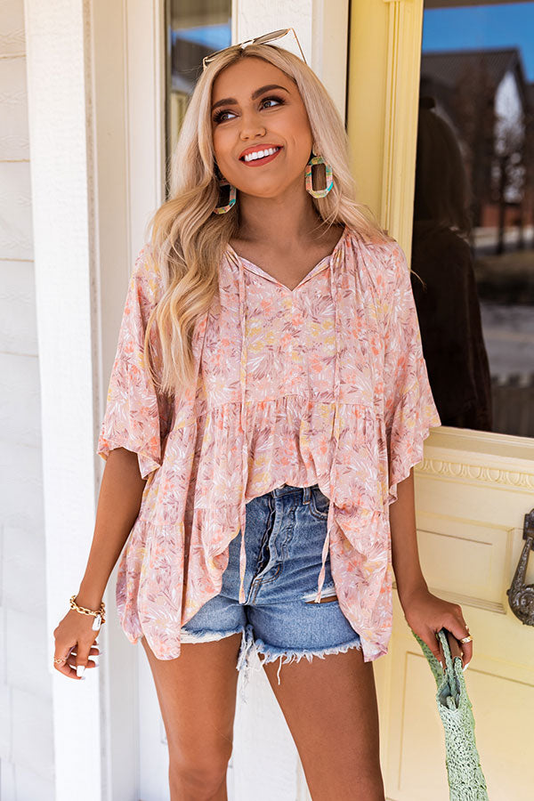 There is no better way to complete your spring look than with our darling light latte colored 'Floral Faith Shift Top' featuring lightweight material patterned with a beautiful floral print, a v-cut neckline with a tie closure, loose half sleeves, and a relaxed silhouette that falls into a straight hemline! Measurements