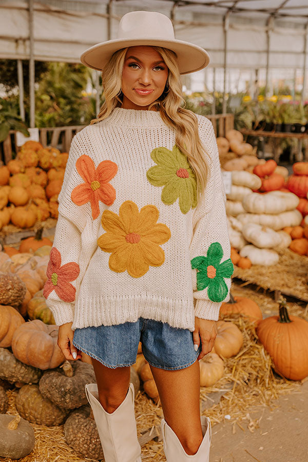 - Sprinkle some sweetness into your wardrobe with this adorable sweater top! Featuring a charming flower design, this cozy piece radiates sweet energy, making it your go-to for everyday cuteness. Whether you're headed to brunch with friends or taking a stroll, this piece pairs perfectly with your favorite jeans or a flirty skirt. Let your personality blossom and show off your sense of style with this darling sweater.