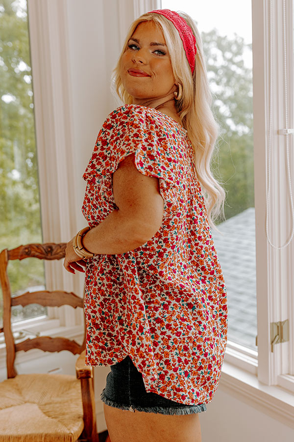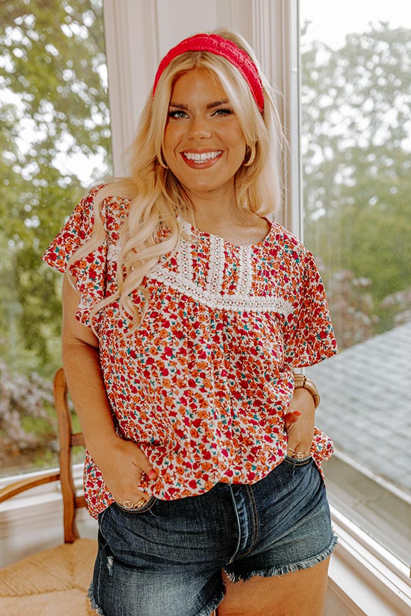 People's gazes are sure to be on you when you arrive in this beautiful ivory plus size shift top featuring lightweight material patterned with an orange, pink, and turquoise floral print, a rounded neckline, loose short sleeves, a keyhole accented upper back with a button closure, and a relaxed silhouette that falls into a straight hemline!
