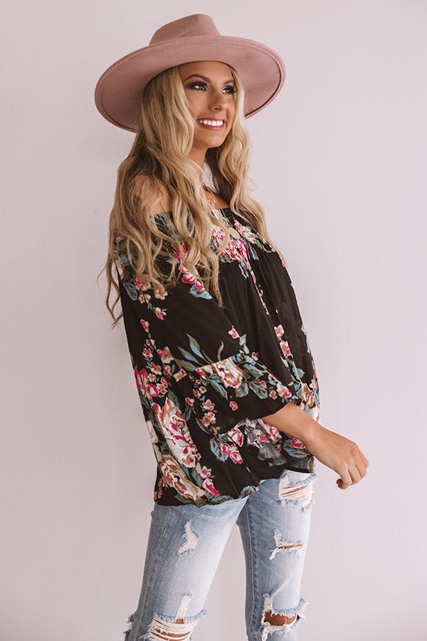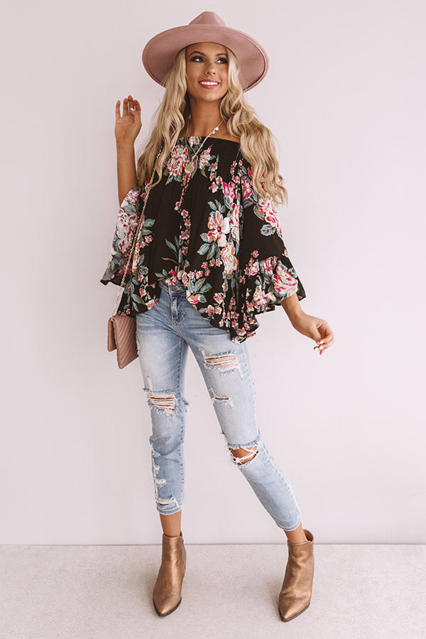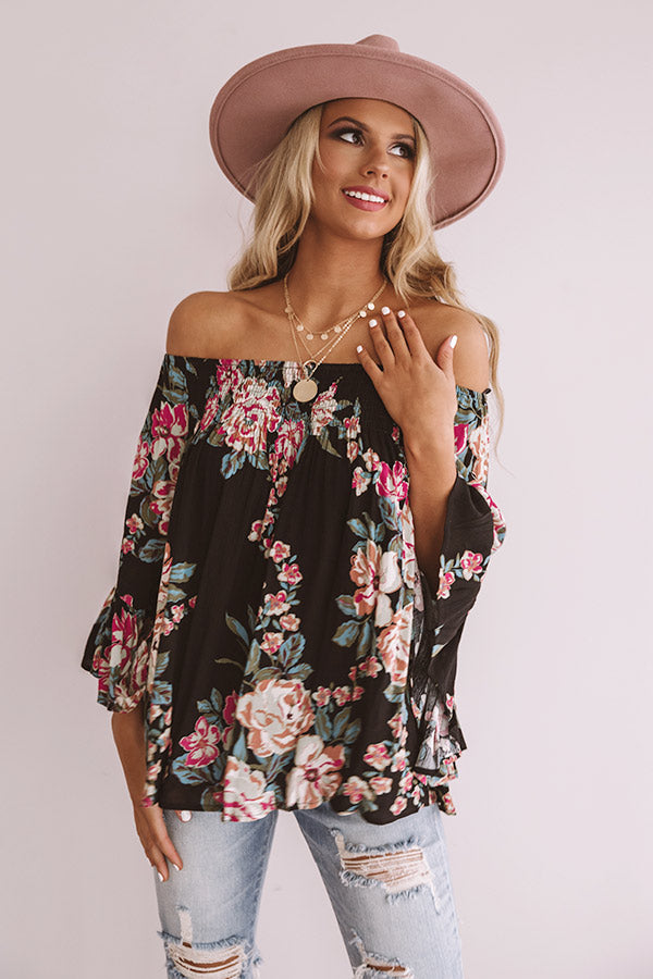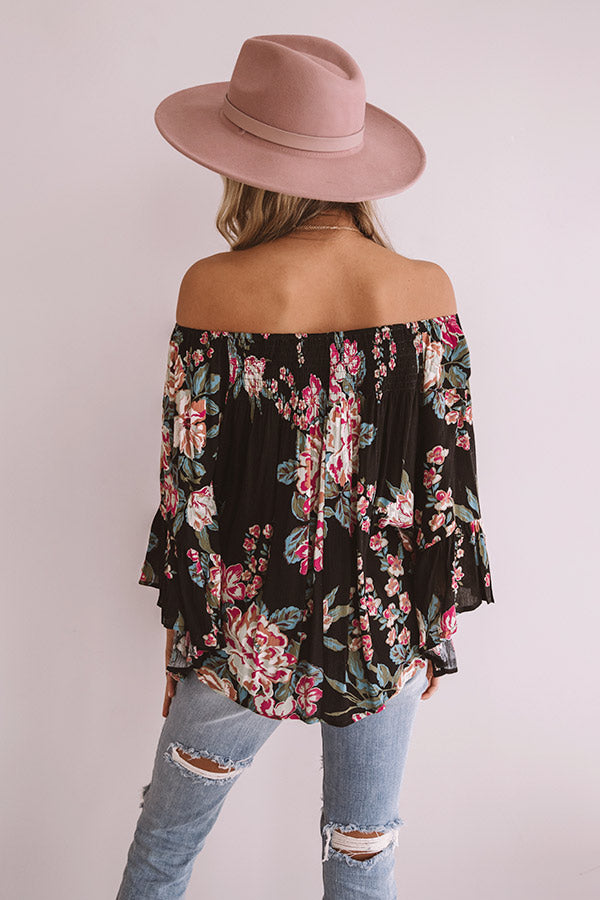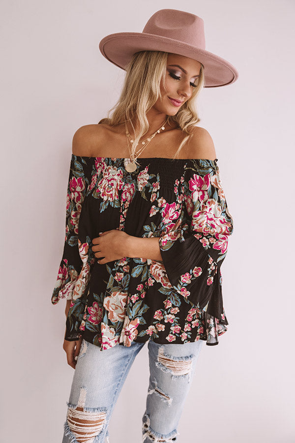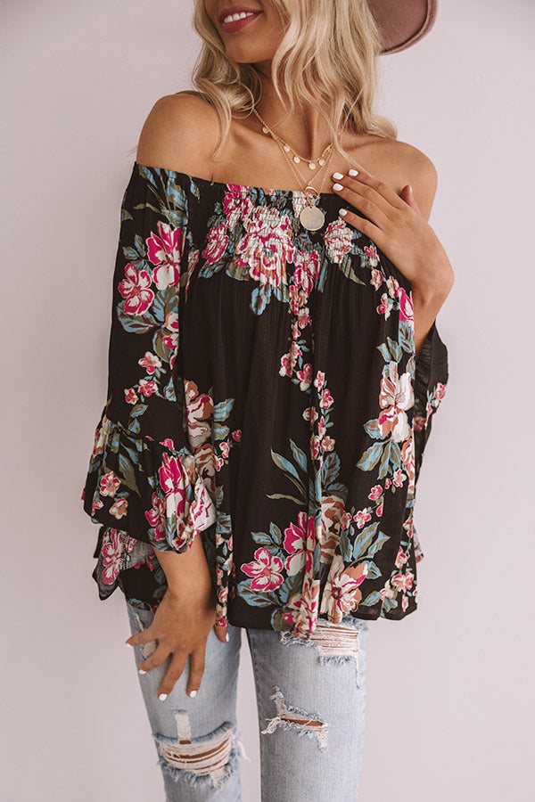 Floral Thrill Off Shoulder Top In Black