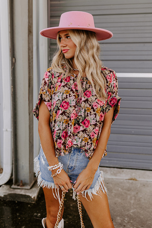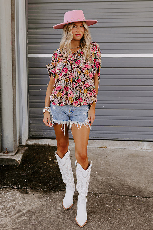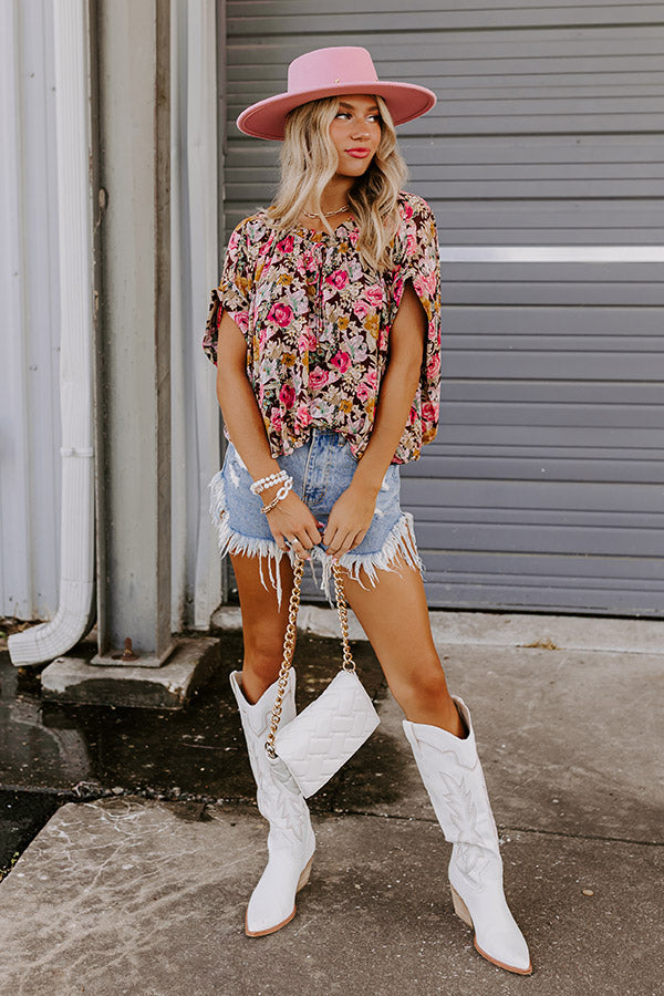 - Breezy chiffon material with an ivory, pink, and yellow hued floral print