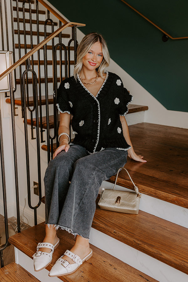 - This charming knit top is the cutest way to refresh your wardrobe! Featuring sweet crochet flowers, it brings a playful pop of petals to your trendy OOTD.