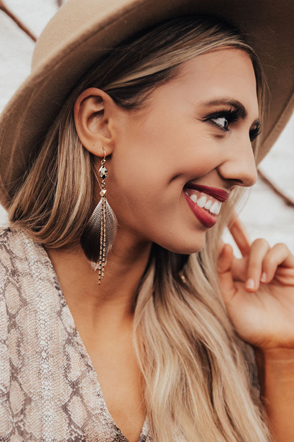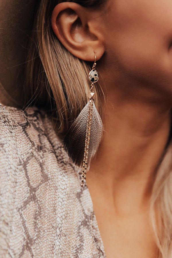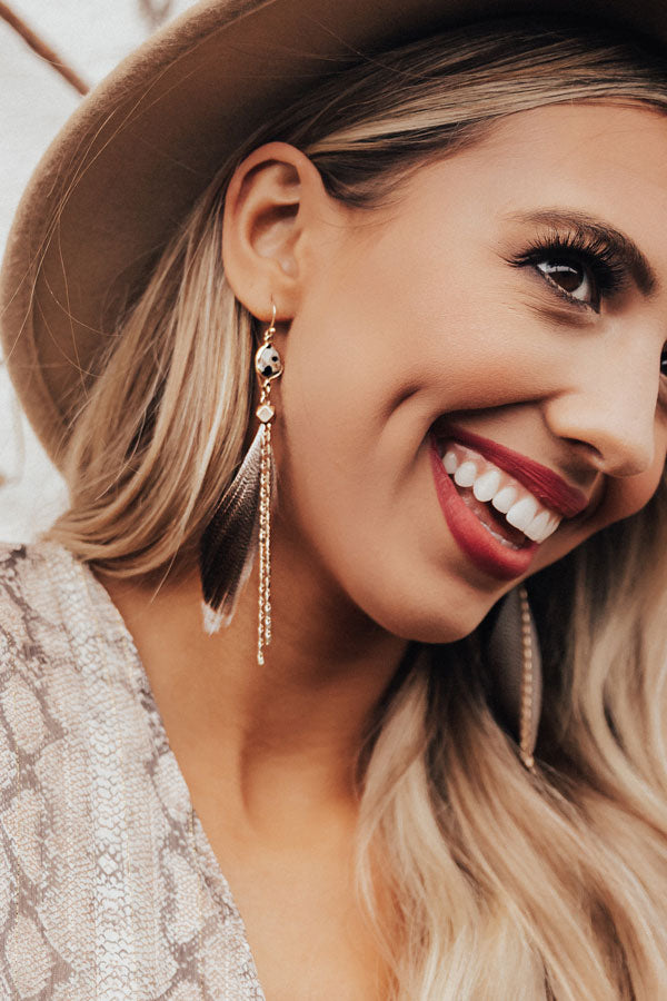 Everyones attention will surely be on you when you accessorize with our "Flying Private" statement earrings featuring dangling feathers and gold chain link tassels!