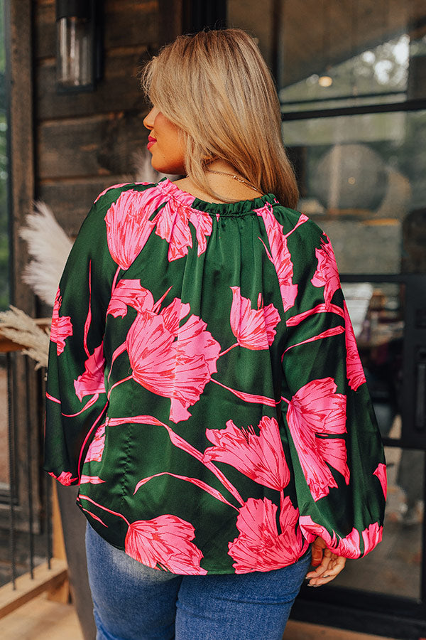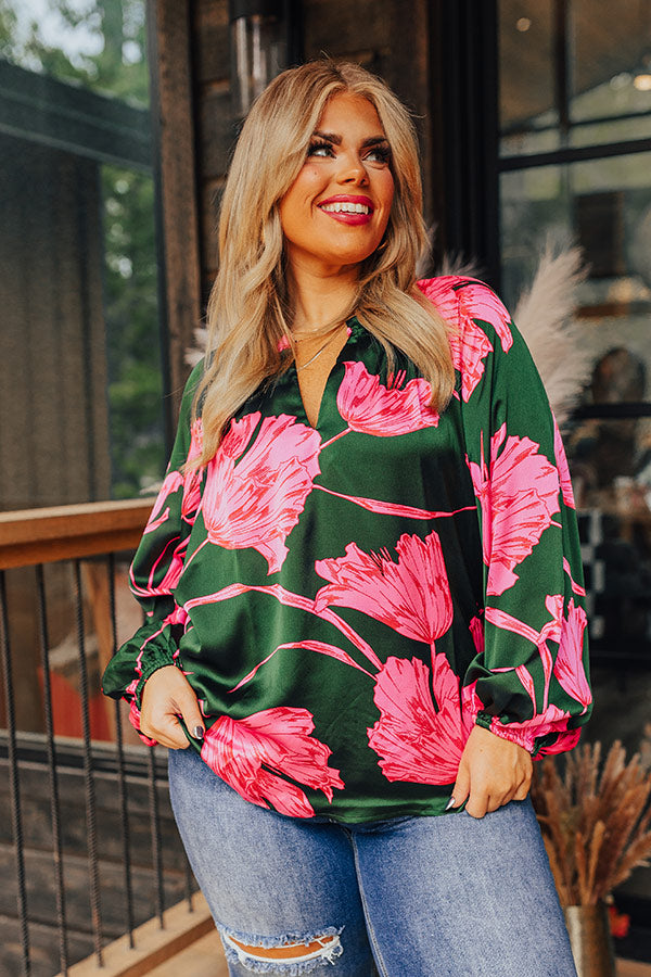 - Unlined material with a pink and red abstract floral print and a satin finish