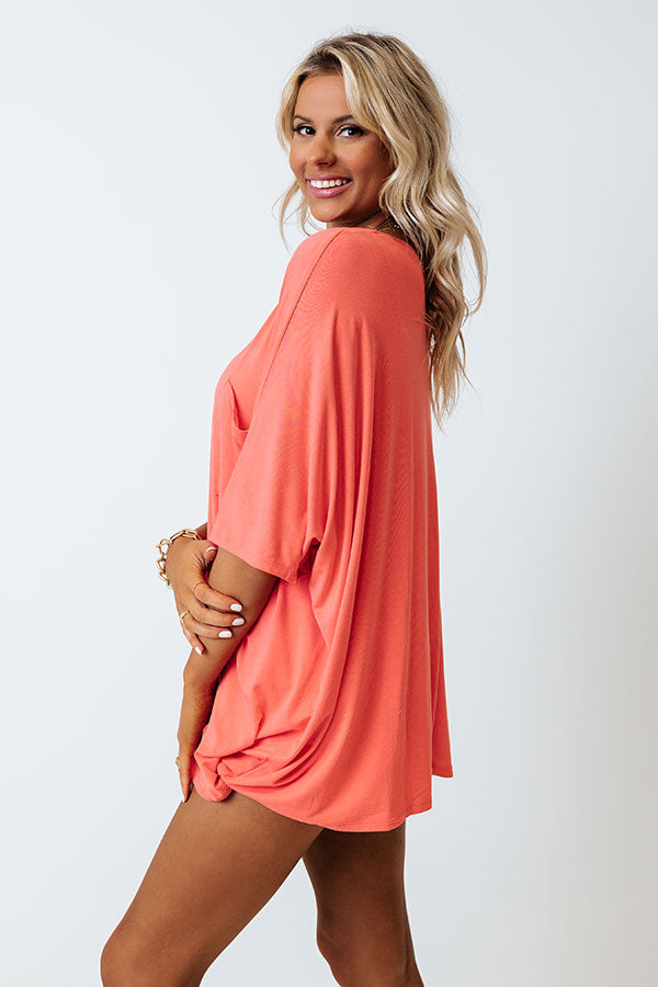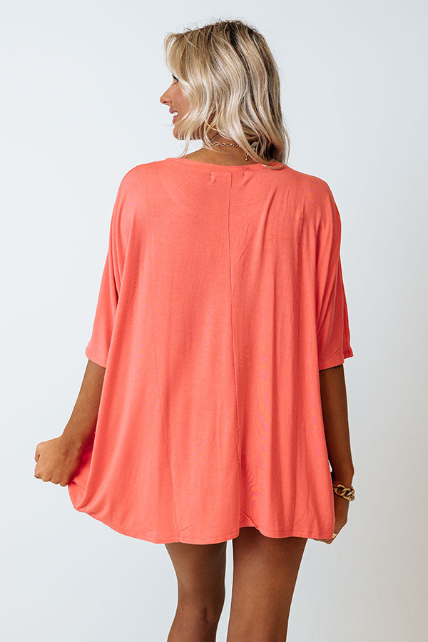 Keep it casual in our simple coral colored 'Fond Of Forever Shift Tee' featuring soft lightweight material, a high rounded neckline, loose half sleeves, a single accent chest pocket, and a slouched silhouette that falls into a straight tunic-length hemline! on products