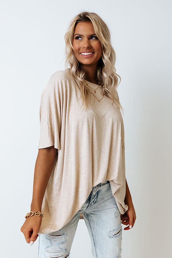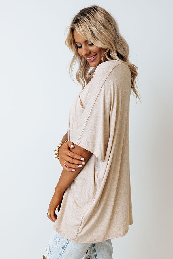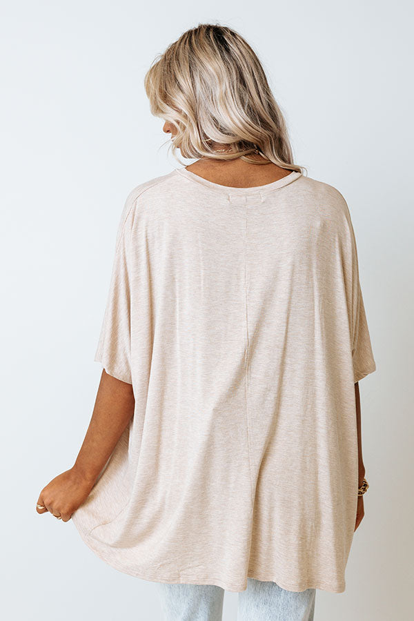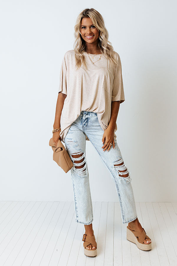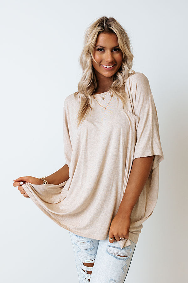 Keep it casual in our simple light beige colored 'Fond Of Forever Shift Tee' featuring soft lightweight material, a high rounded neckline, loose half sleeves, a single accent chest pocket, and a slouched silhouette that falls into a straight tunic-length hemline! on products