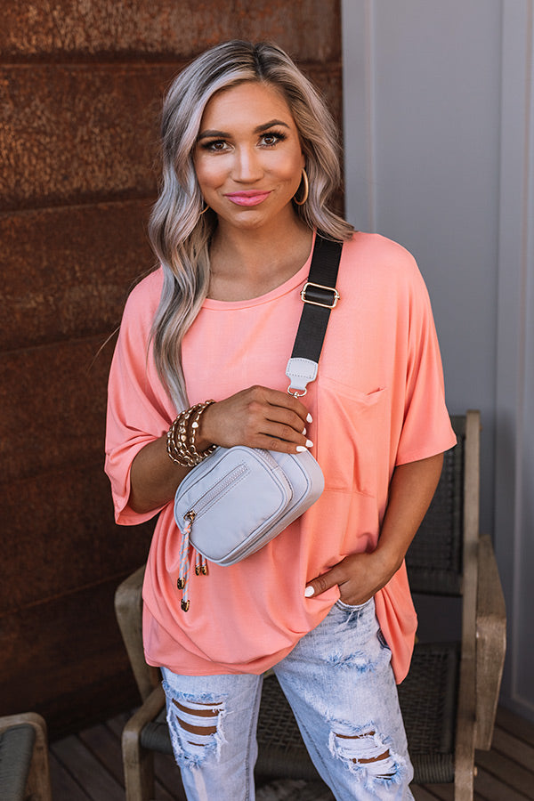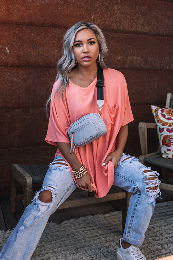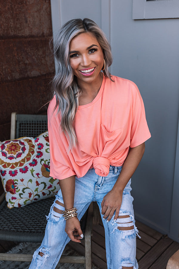 Keep it casual in our simple peach colored 'Fond Of Forever Shift Tee' featuring soft lightweight material, a high rounded neckline, loose half sleeves, a single accent chest pocket, and a slouched silhouette that falls into a straight tunic-length hemline! Measurements