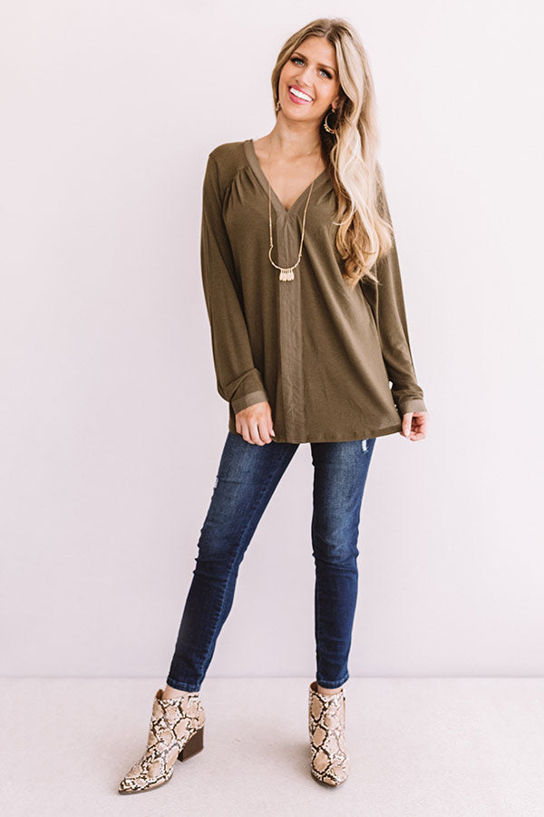 For Love and Lattes Shift Top in Martini Olive