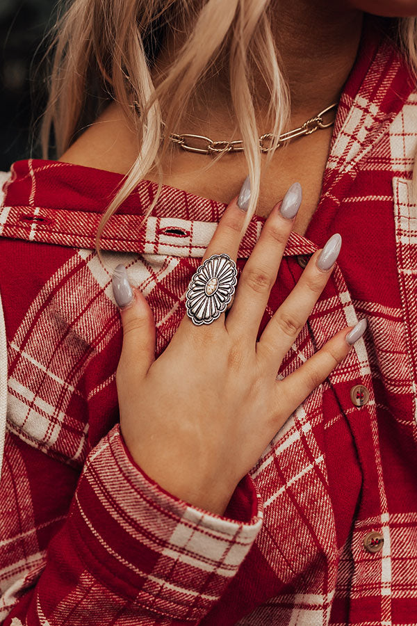 Upgrade your wardrobes statement jewelry with our beautiful 'Forest Trail Ring' featuring an ornate vintage silver setting with small oval ivory stone accent in the center!