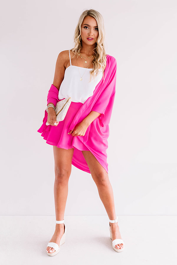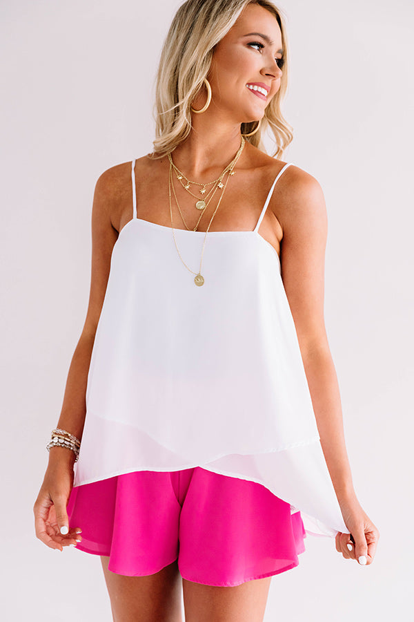 You won't find a better year round piece this charming basic white tank featuring sleek lightweight material, a straight neckline and low back, spaghetti straps, and a relaxed faux wrapped silhouette that falls into an uneven tulip hemline! Your styling options are endless with this versatile cutie! It pairs perfectly with some hot pink shorts, a matching overlay, and white wedge and clutch, or it can be worn layered under a cropped jean jacket with some distressed black skinnies, "The Tory Snake Print Heel," and some black sunnies!