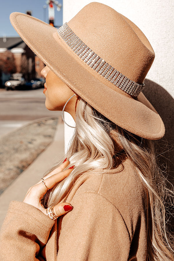 Make a glitzy statement with our charming iced latte hued 'Forever Fated' fedora featuring lightweight felt material, a 4-inch brim, and shimmering rhinestone accent band!