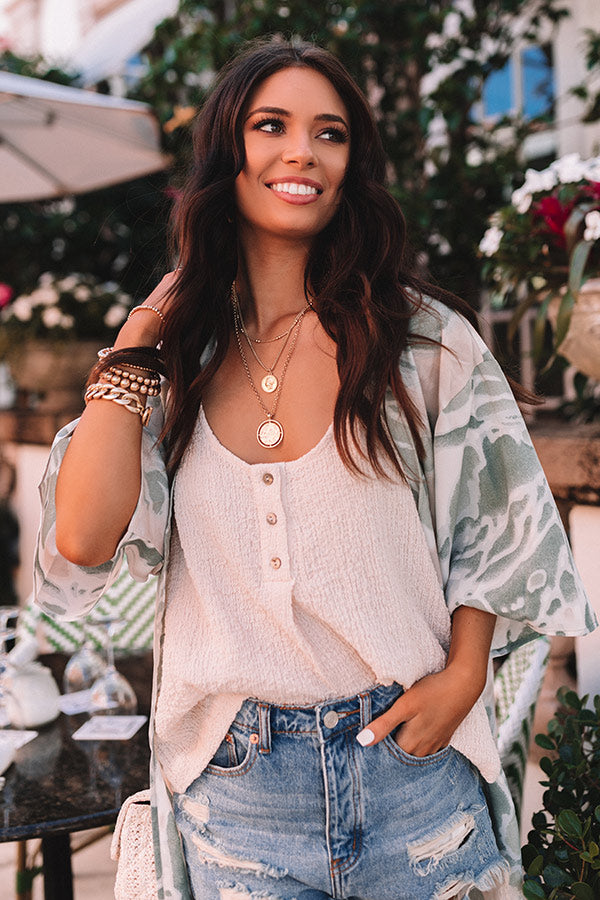 Upgrade your summer basics with our casual champagne colored 'Forever Fearless' tank featuring lightweight material with subtle texturing, a button up henley bodice with a scooped neckline, 1-inch sleeveless shoulder straps, and a relaxed silhouette that ends in a straight hemline! Measurements