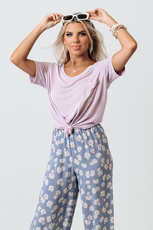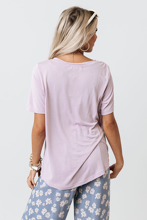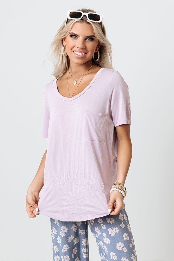 Keep it simple in our casual lavender 'Forever Friendly Shift Tee' featuring soft lightweight and flowy material, a scooped v-cut neckline, short loose sleeves, a single accent chest pocket, and a slouched silhouette that ends in a rounded hemline!