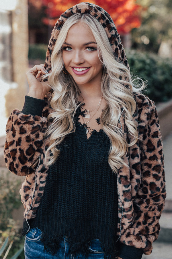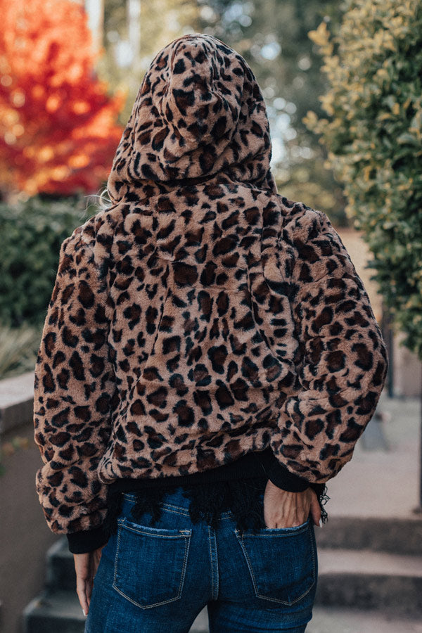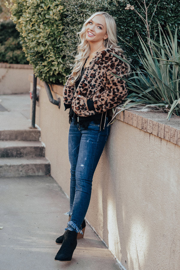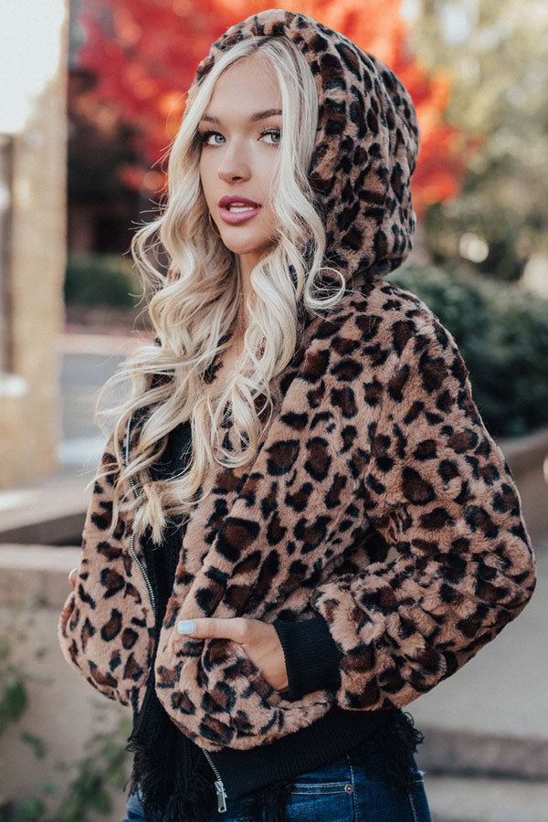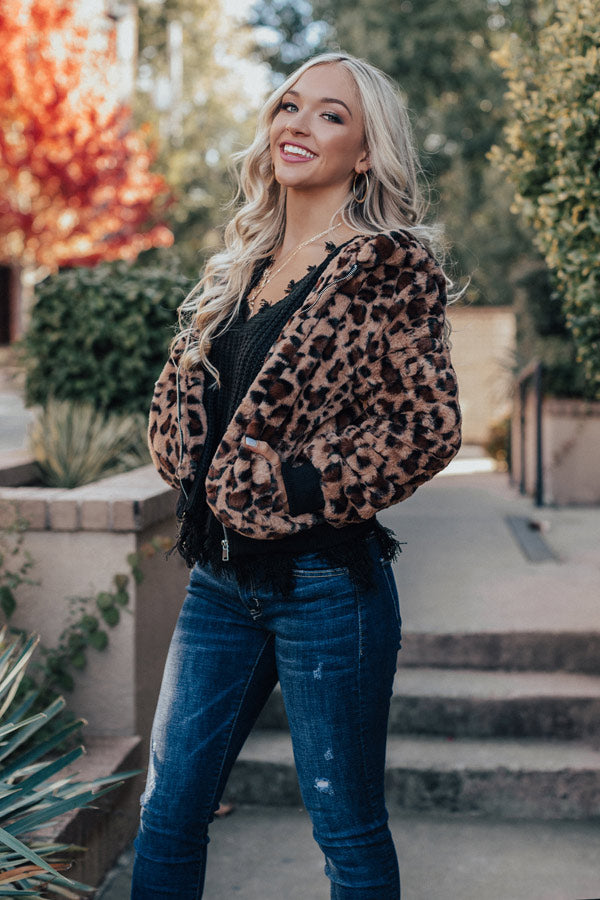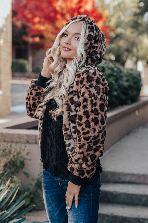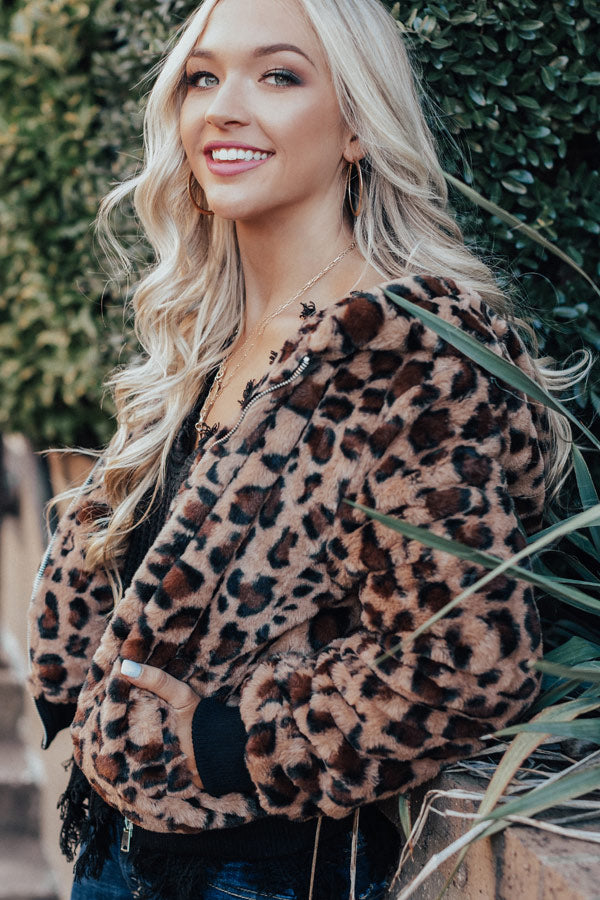 Stay extra warm this winter in our "Forever On My Heart" plush jacket featuring soft thick faux fur material patterned with a bold brown and black leopard print, long loose sleeves with fitted cuffs, a hooded back, hidden side pockets, and a relaxed zip-up bomber silhouette that falls into a straight elastic hemline! You can style this versatile piece with just about anything from a basic tank to a sweater, jeans to skirts or dresses, booties to wedges or sandals, clutches to totes, and hats to earrings! Measurements
