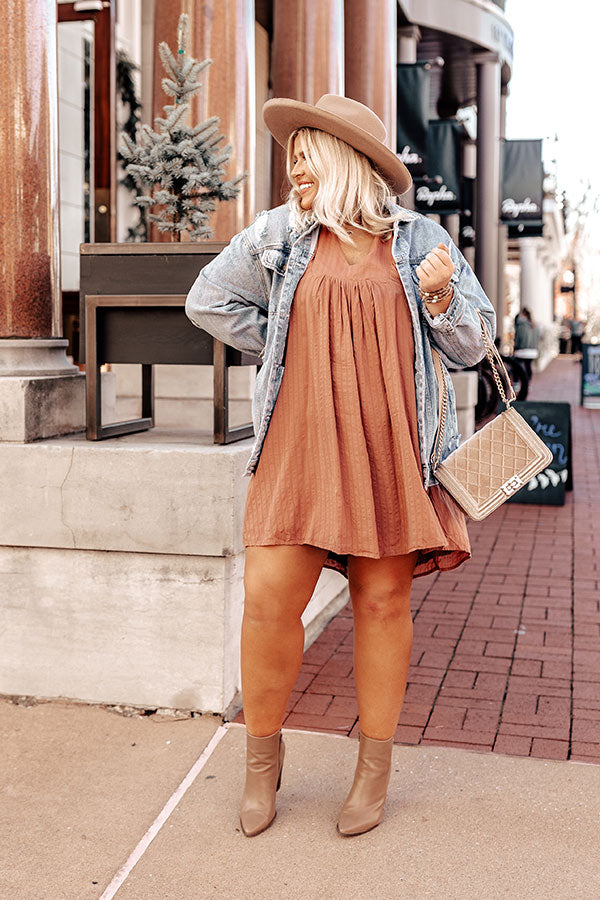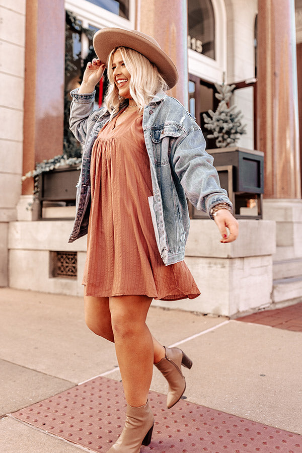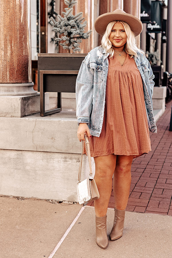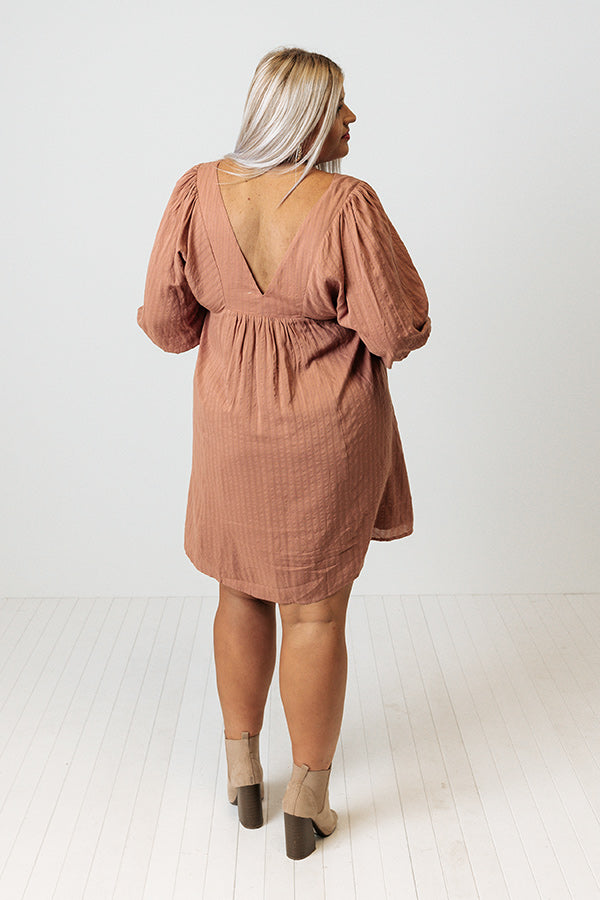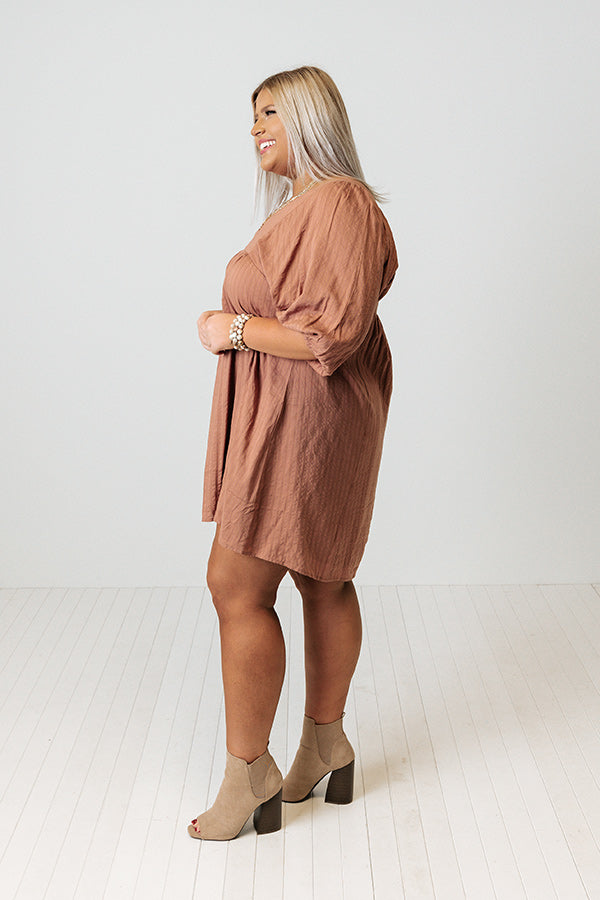 People will forever see you as stylish when you wear this pretty plus size rustic rose hued dress featuring lightweight flowy material, a v-cut neckline and upper back, bubble half sleeves, and a relaxed silhouette that falls into a straight mid-thigh length hemline! Measurements