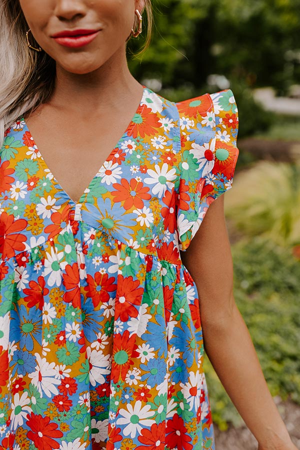 Jaws are sure to drop when you arrive in our adorable blue 'Forever Summer' dress featuring lightweight material patterned with a vibrant floral print, a v-cut neckline, ruffled cap sleeves, hidden side pockets, a keyhole accented upper back with a button closure, and a relaxed silhouette that falls into a straight hemline!
