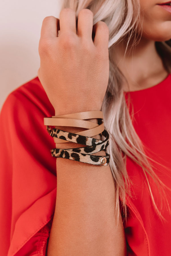 Formal Invitation Leopard Wrap Bracelet In Brown