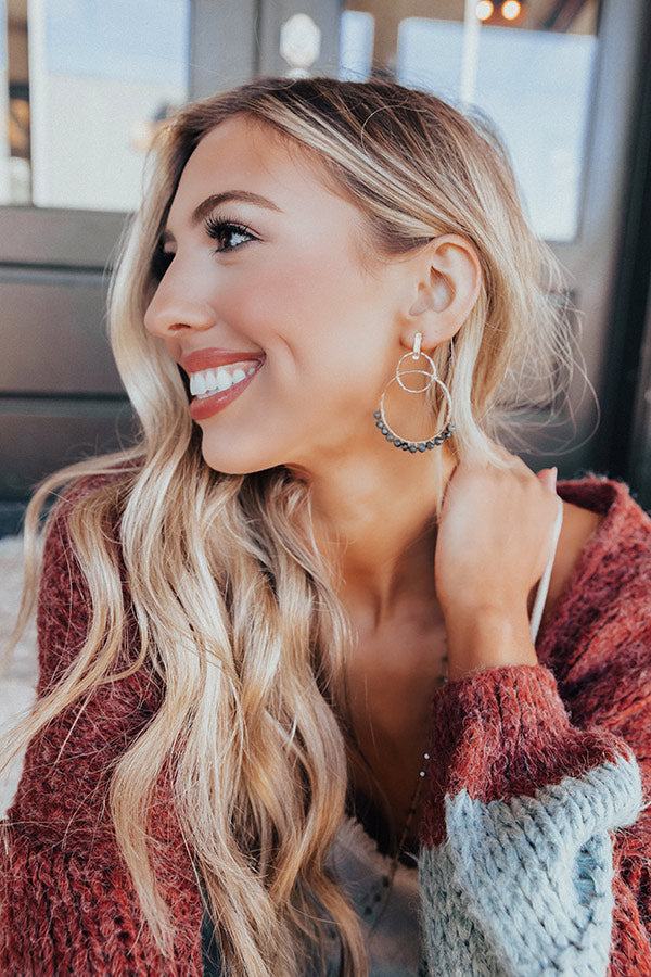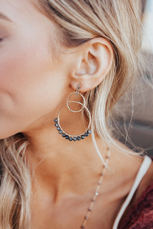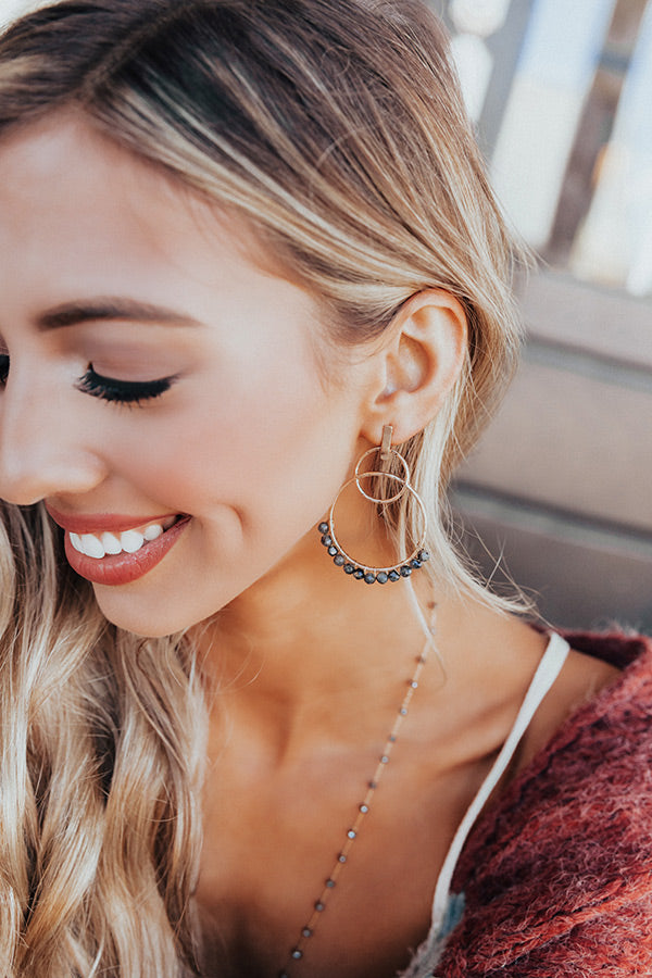 You won't have to wait for a "formal invitation" to accessorize with these statement earrings featuring gold post studs and two circle hoops with black semi precious accent beads!