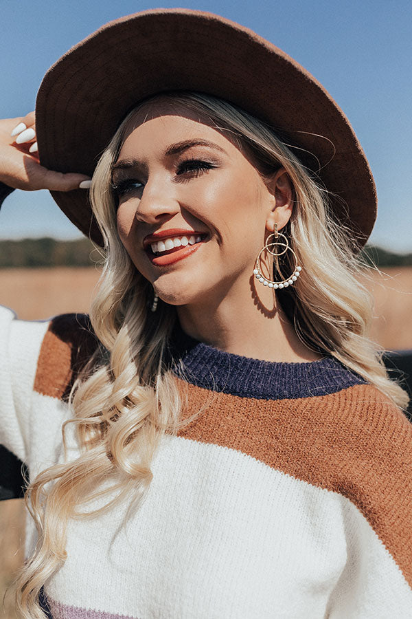 You won't have to wait for a "formal invitation" to accessorize with these statement earrings featuring gold post studs and two circle hoops with white accent beads!