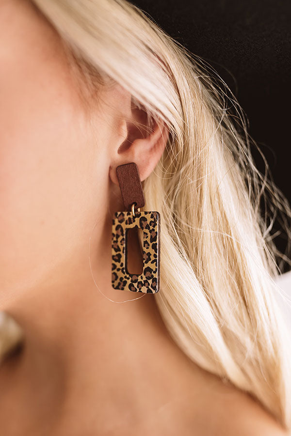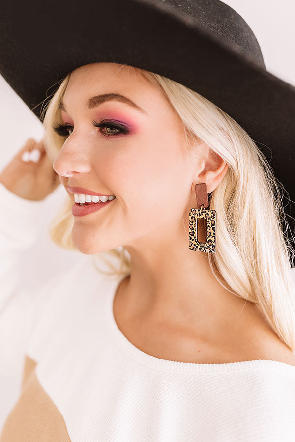 We guarantee you will feel "free and fearless" when you accessorize with these statement earrings featuring faux wood rectangle studs with open leopard print squares!