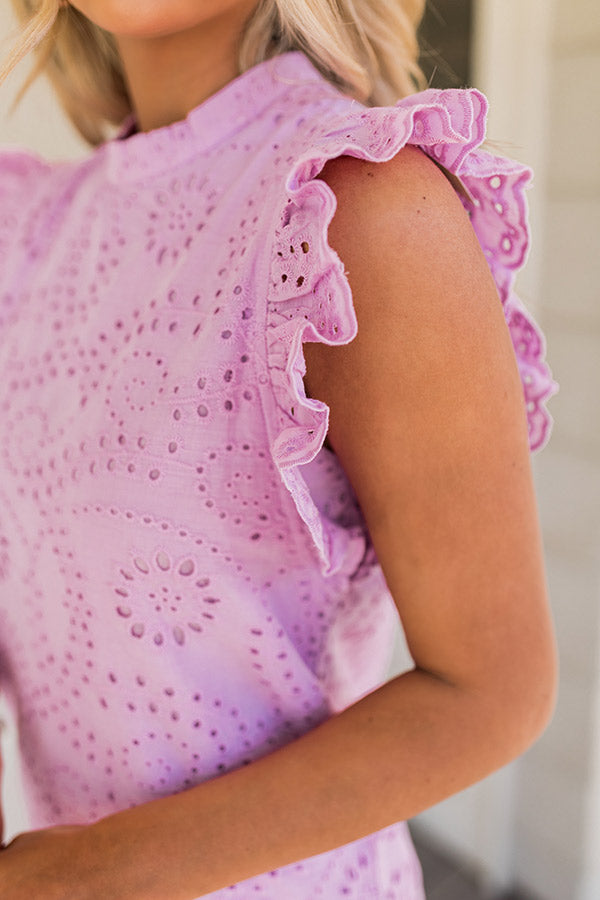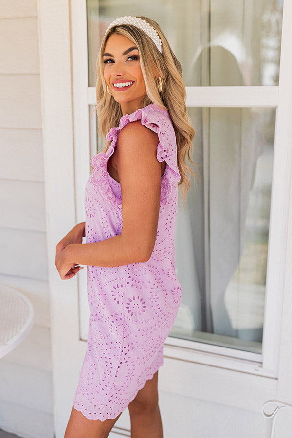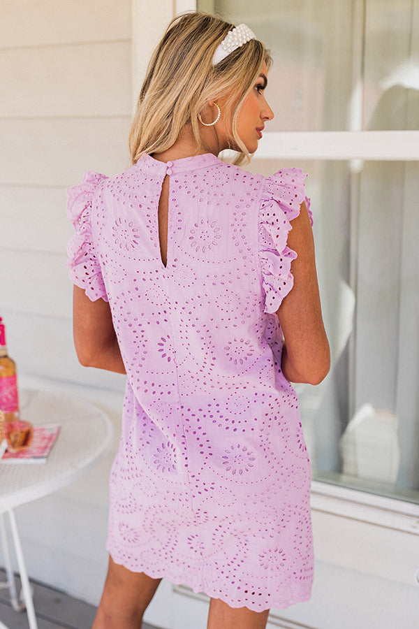 Arrive in elegance in our darling lavender colored 'Free And True' dress featuring lightweight material with pretty eyelet detailing, a rounded neckline, ruffled cap sleeves, a keyhole accented upper back with a button closure, and a flattering figure hugging silhouette that ends in a scalloped mid-thigh length hemline!