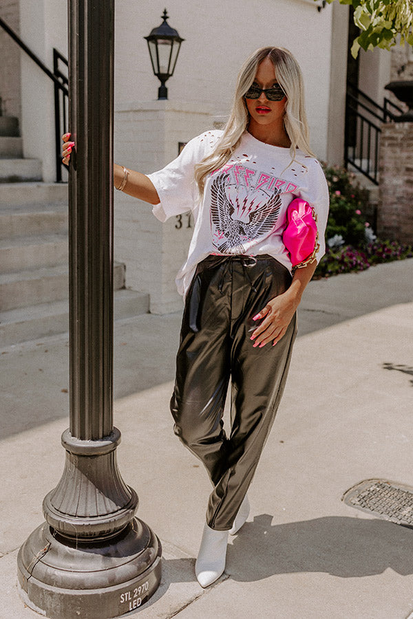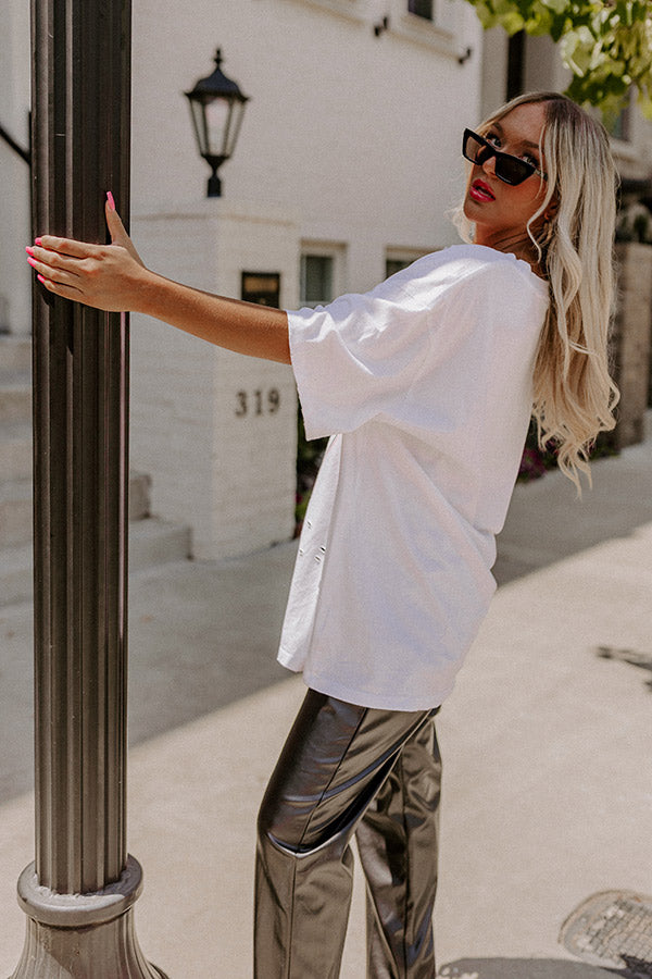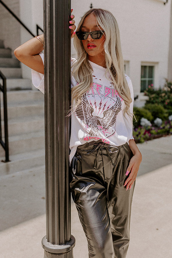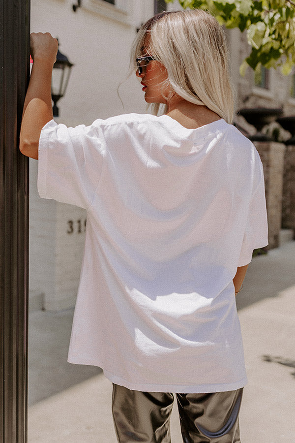 Stay on trend in this adorable white tee featuring lightweight cotton-blend material with distressed detailing, a cute free bird graphic on the front, a rounded neckline, short loose sleeves, and an oversized silhouette that falls into a straight hemline!