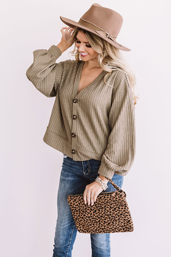 You will be "free FALLing" into the chillier weather when you wear this sage shift top featuring lightweight material, ribbed texturing, long loose sleeves with fitted cuff bands, a straight hemline, and a slouched tortoiseshell button up front bodice with a v-cut neckline! This casual fall piece looks perfect styled with some distressed ankle skinnies, a leopard clutch, and a neutral pointed bootie and faux suede hat, or with some charcoal flares, "The Jess Faux Leather Heel in Natural," and our "All Caught Up Headband in Ivory!" Measurements