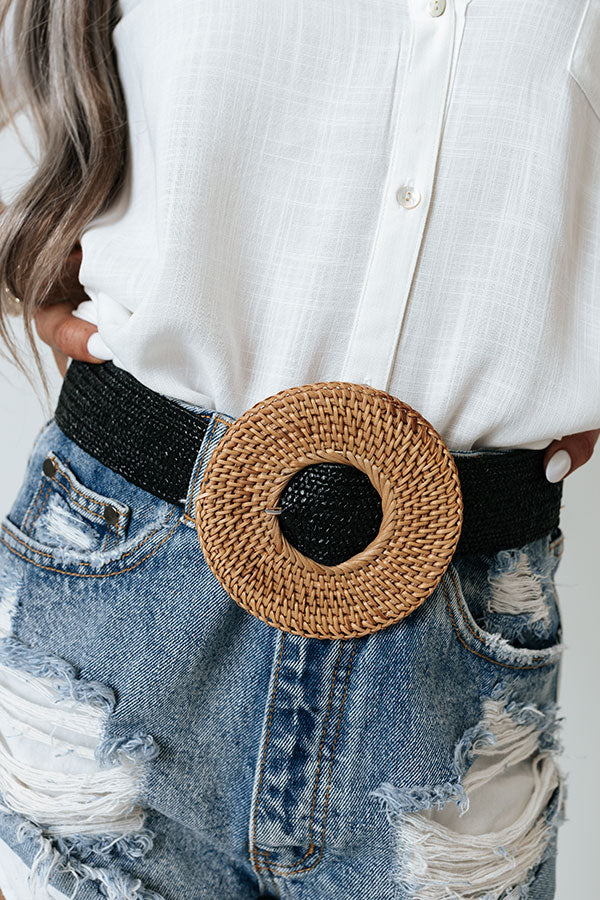 Let your soul run free with this adorable belt featuring a black woven strap and an oversized circle woven buckle!