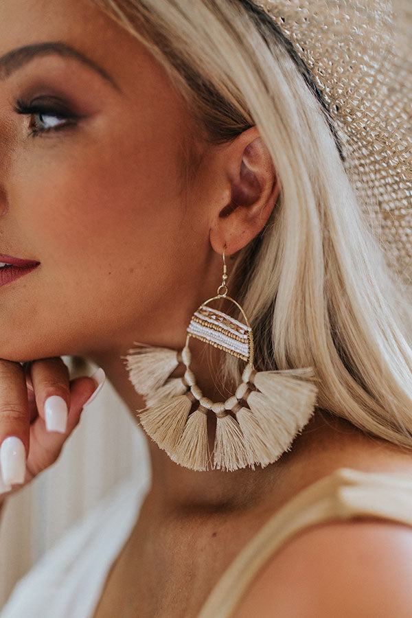 Let your jewelry style run free with these gorgeous statement earrings featuring a dangling oval hoop with an embellished accent band across the middle and an oversized natural hued accent fan!