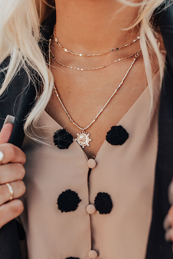Make a small but significant statement with our dainty 'French Accent' necklace featuring three layered gold chains with a stamped coin pendant!