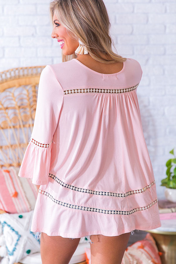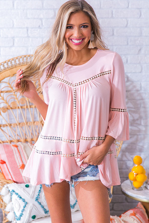 You can never pack too many "comfy cute" outfits for a weekend getaway, and this comfortably chic shift top is ready for whatever the day decides to throw your way! This boho babe has quarter-length bell sleeves & an ultra relaxed jersey rayon bodice with crochet pierced accents throughout. Easily dress your look up or down with just a simple shoe change!