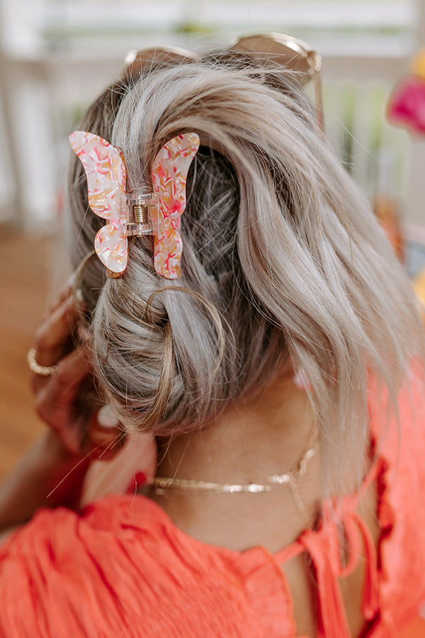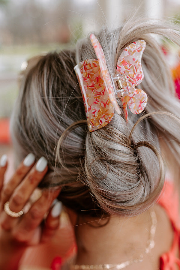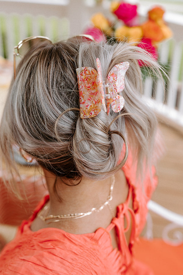 Your hair style is sure to bloom when you tame your mane with this adorable hair claw clip featuring a nectarine colored marbled butterfly!