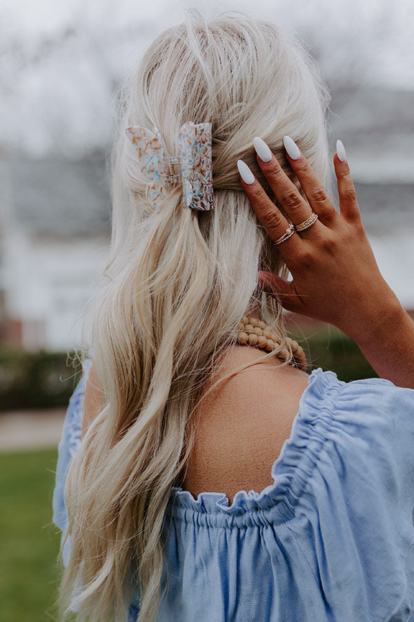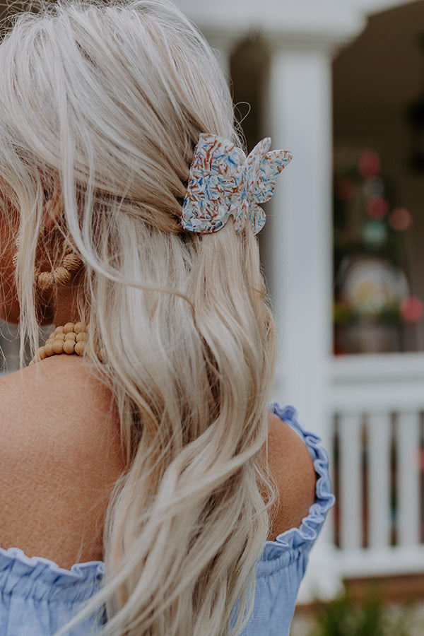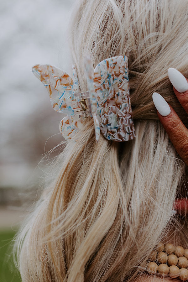Your hair style is sure to bloom when you tame your mane with this adorable hair claw clip featuring an ocean blue marbled butterfly!