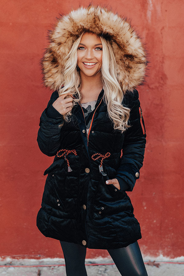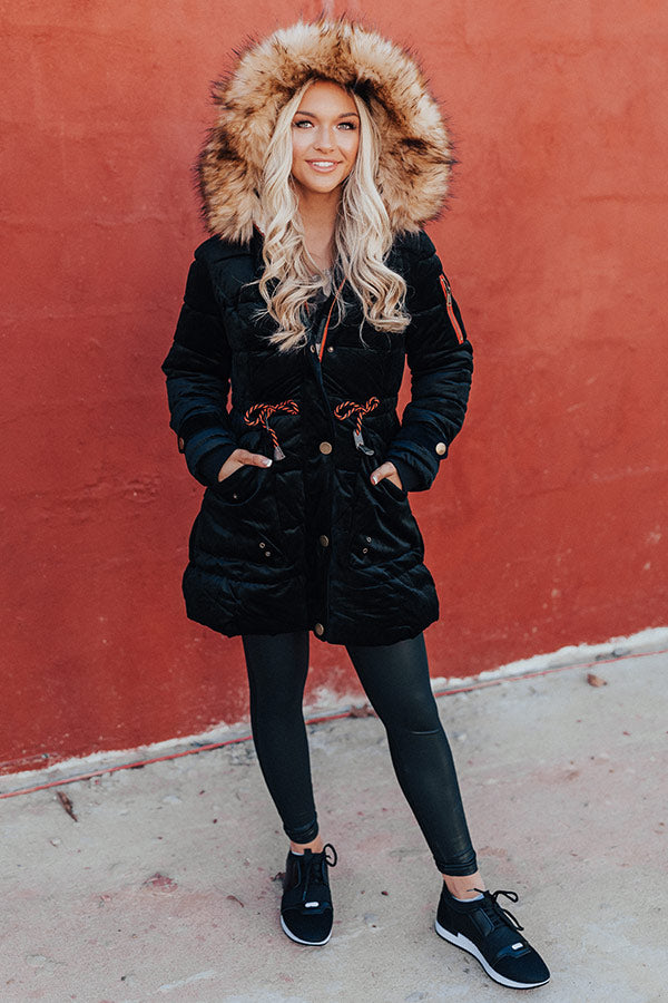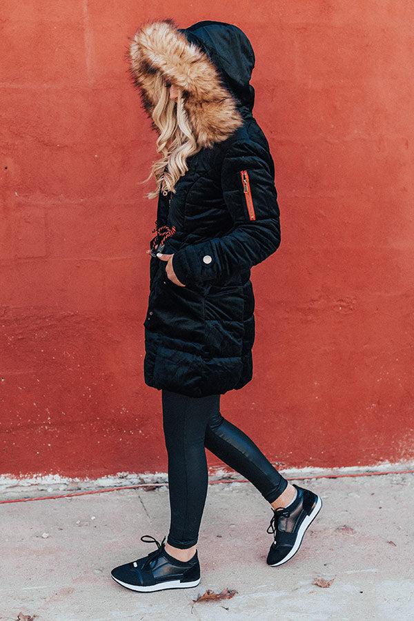 Fresh Snowfall Faux Fur Lined Coat In Black