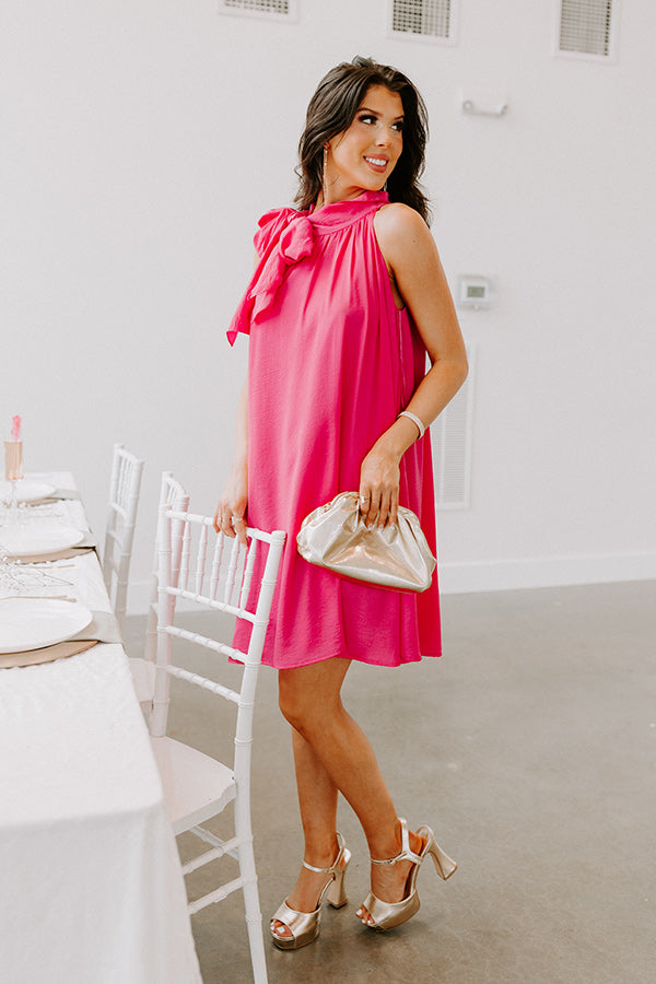 Get glamorous on a Friday night with this charming hot pink shift dress featuring lightweight flowy material, a tie closure halter neckline, a flattering sleeveless fit, and a relaxed silhouette that falls into a straight mid-thigh length hemline!