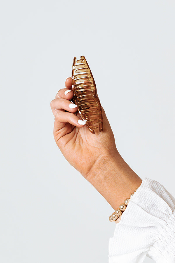 People are sure to send you a friendly gaze when they see your hair in this chic brown tortoiseshell claw clip!