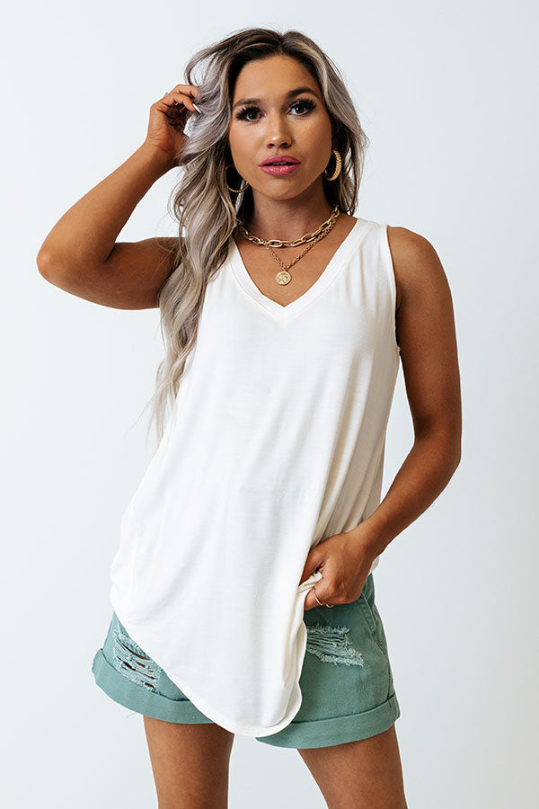 Take your wardrobe basics to the next level with our cute cream colored 'Friends For Life Shift Tank' featuring soft lightweight material, a v-cut neckline, wide sleeveless shoulder straps, and a relaxed silhouette that falls into a straight hemline!