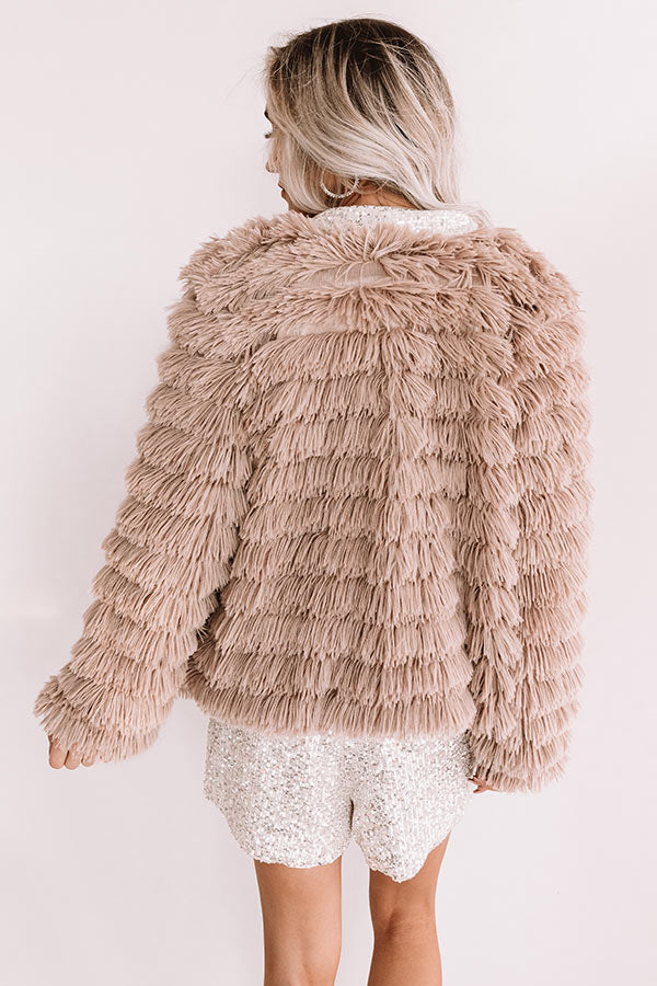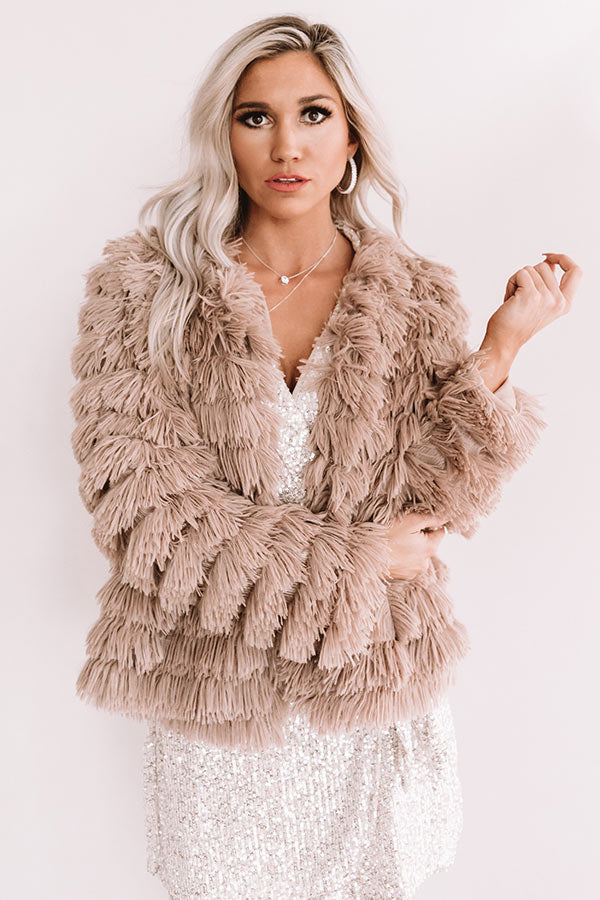 You are sure to make the "front page news" when you wear this eye-catching jacket featuring neutral faux fur material with thick ribbed fringe detailing, long loose sleeves, and relaxed open front silhouette that falls into a straight hemline! You can style this ultra warm and versatile piece with just about anything from a basic tank to a bodysuit, jeans to shorts, wedges to sandals, clutches to totes, and hats to earrings! Measurements