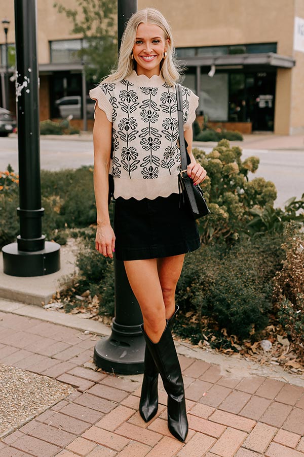 - Let your sweet side shine with this adorable knit top! With its super-cute flower pattern, tie accents, and scalloped detailing, this piece is bursting with charm. Style it with a flirty mini skirt and faux suede boots for a chic look that is sure to steal the show! - Unlined knit material with a flower pattern - A scalloped mock neckline - Short sleeves with scalloped cuffs - Two tie accents on each side - A relaxed silhouette that ends in a scalloped hemline