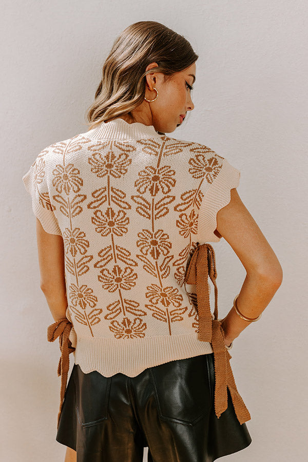 Front Porch Sippin' Floral Sweater Top in Mocha