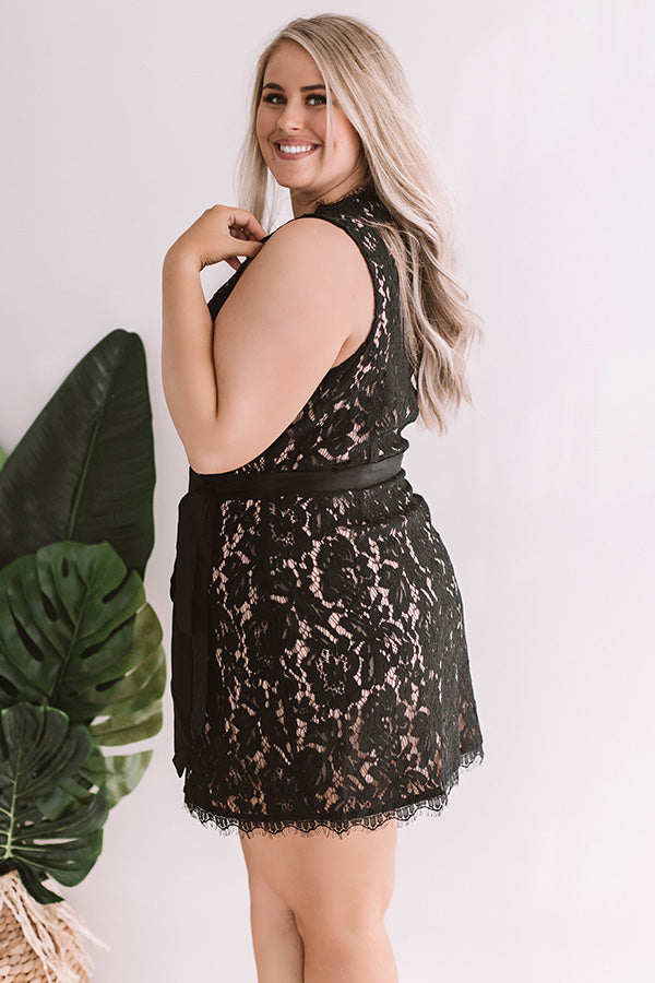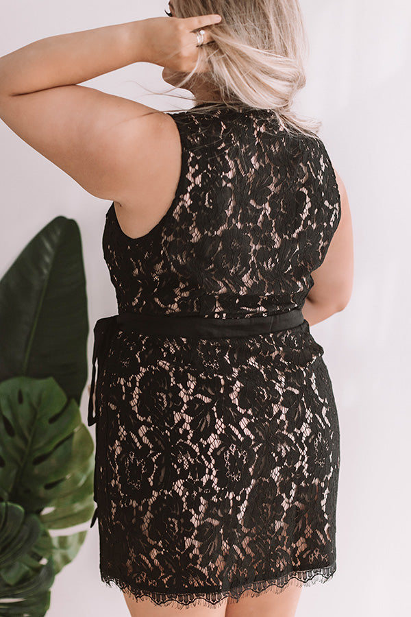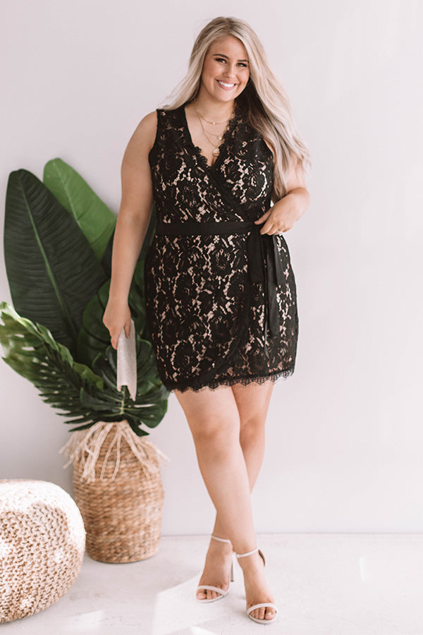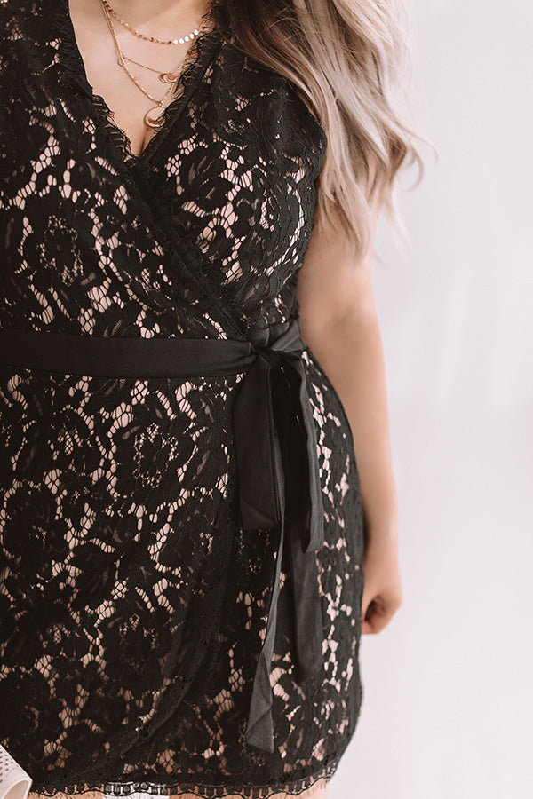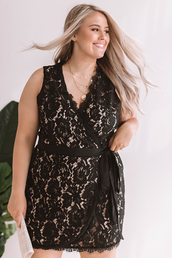 Front Row Exclusive Lace Wrap Dress in Black Curves