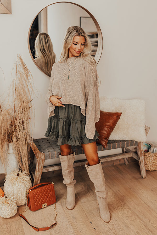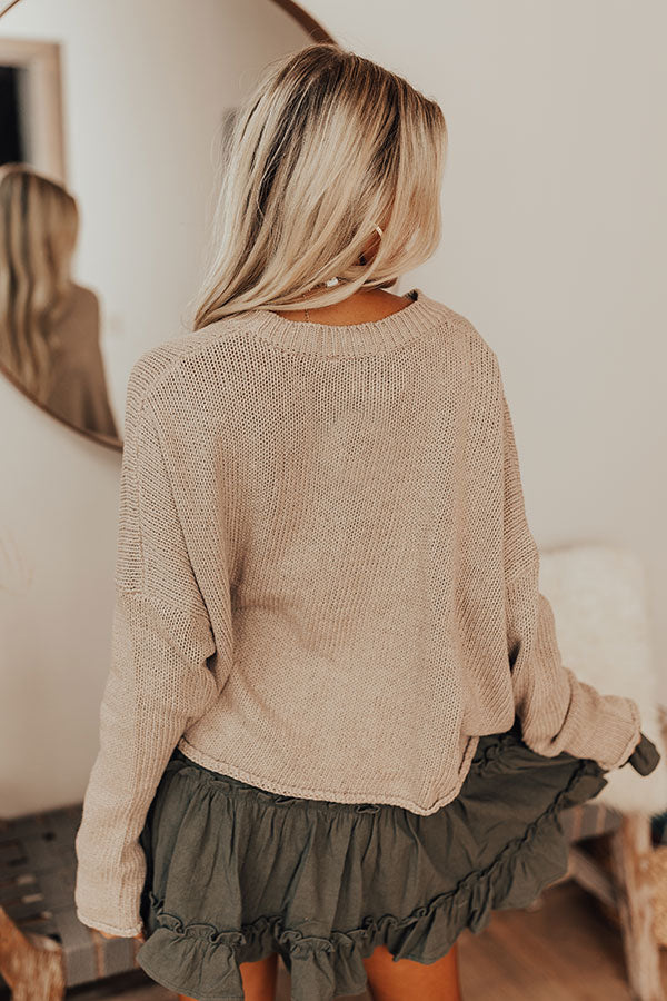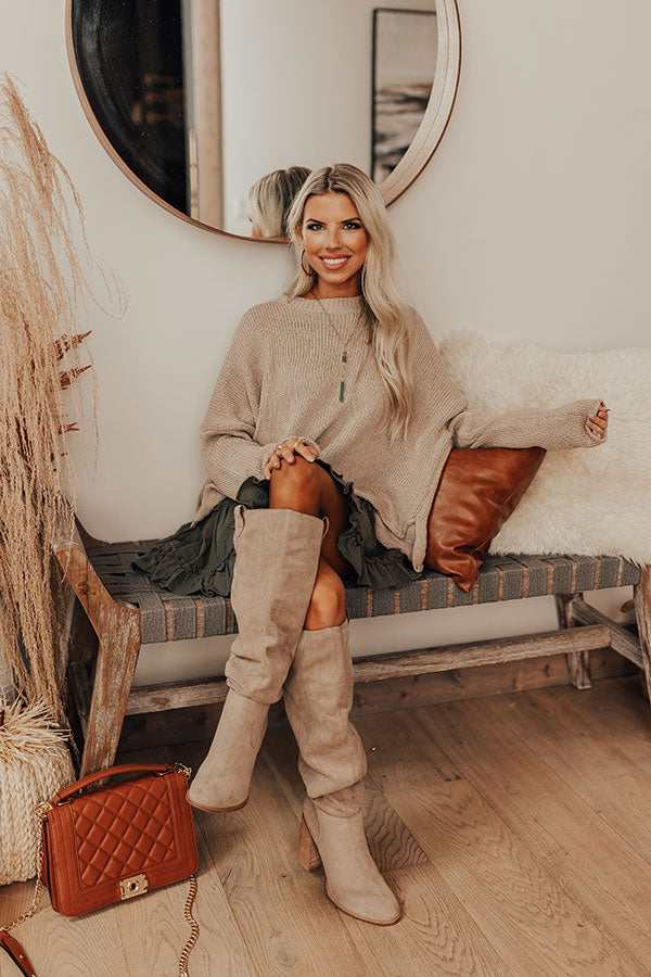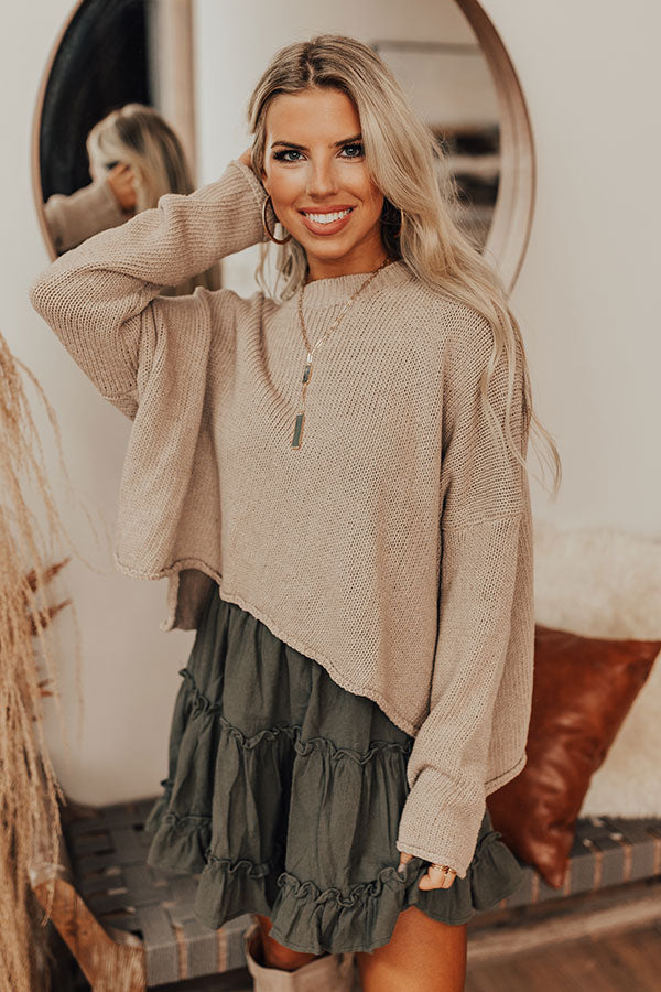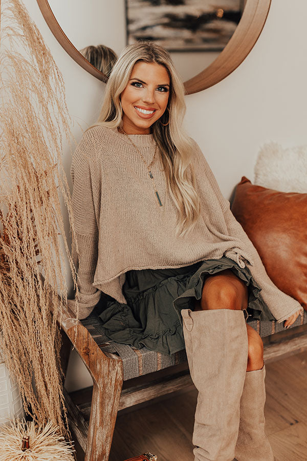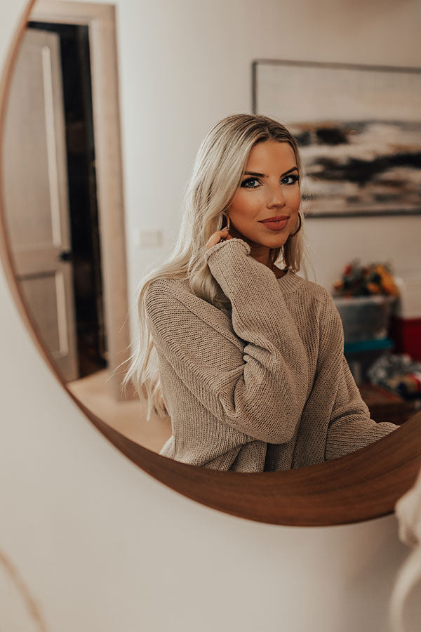 Our casual birch colored 'Frozen Frappe Sweater' may be basic, but it's no less beautiful with its soft knit material, rounded neckline, long loose sleeves, and slouched silhouette that falls into a straight raw-cut hemline with accent side slits! Measurements