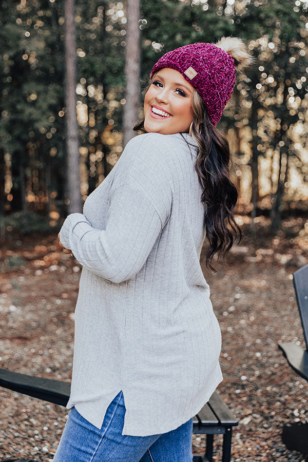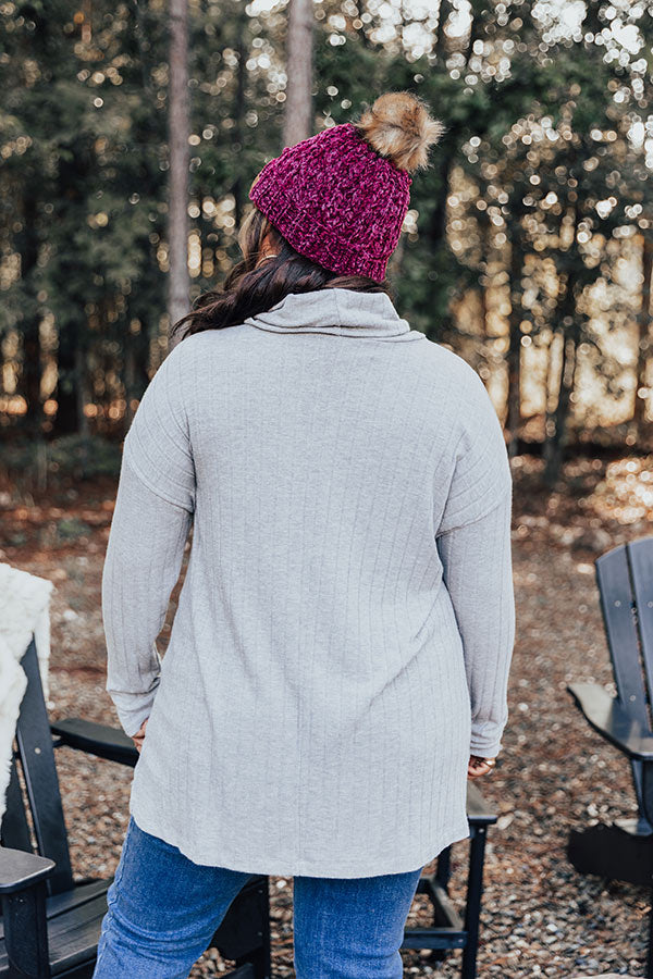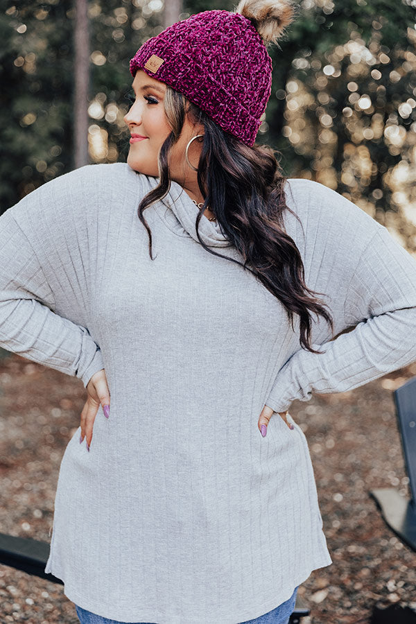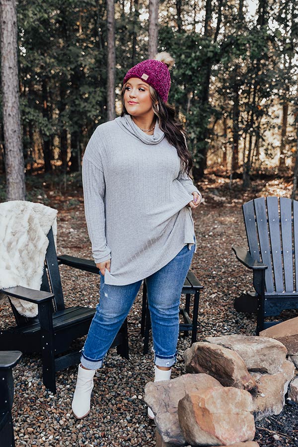 Plus Size - Take your fall basics to the next level with our simple but stylish grey 'Full Moon Shift Top' featuring soft lightweight material with wide ribbed detailing, a bunched turtleneck, long loose sleeves, and a flattering silhouette that ends in a straight hemline with accent side slits!
