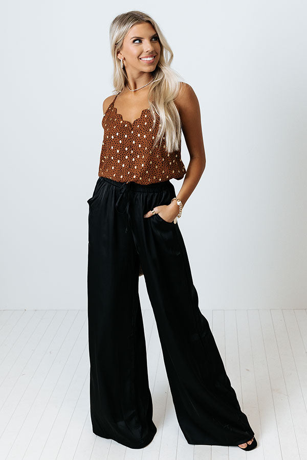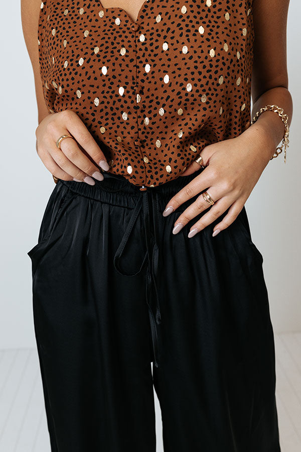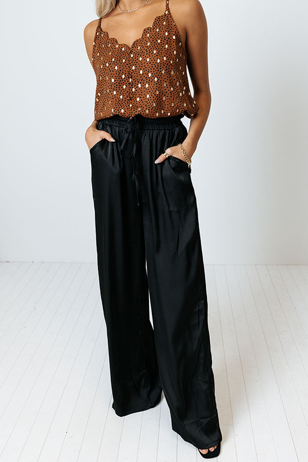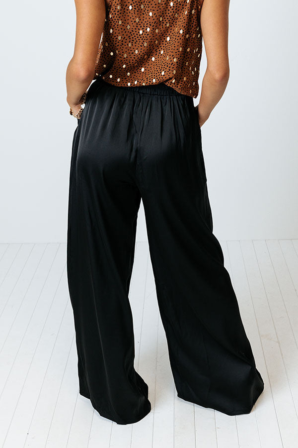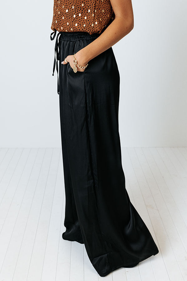 You will look like a total girl boss in our pretty black 'Future In Focus' pants featuring sleek lightweight and breezy satin material, an elastic waistline with a tie closure, accent side pockets, and a relaxed silhouette that falls straight into floor-length hemlines! Measurements