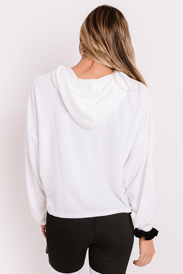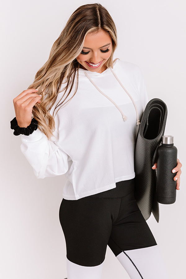 Keep it simple by stylish in our chill white 'Gaining Momentum Hoodie' featuring ultra soft lightweight material, a high neckline with a drawstring hooded back, long loose sleeves with fitted cuffs, and a slouched silhouette that ends in a straight hemline!