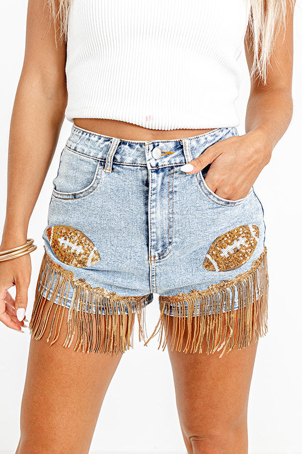 - A figure flattering silhouette that ends in straight upper-thigh length hemlines with gold sequin fringe detail on the front