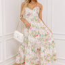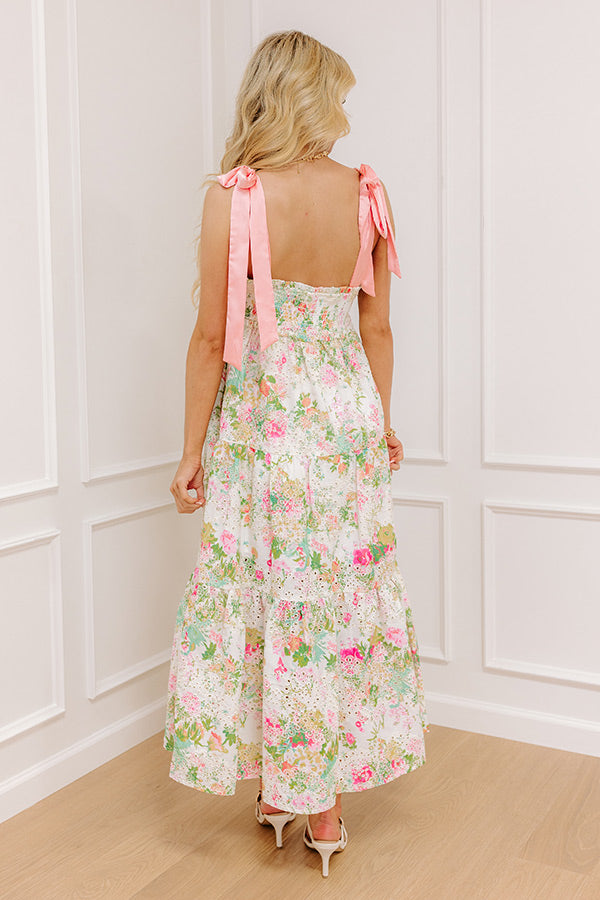 - Bloom bright like a field of wildflowers in this sweet maxi dress! Charming floral eyelet material and tied satin straps give this dreamy dress a romantic vibe.