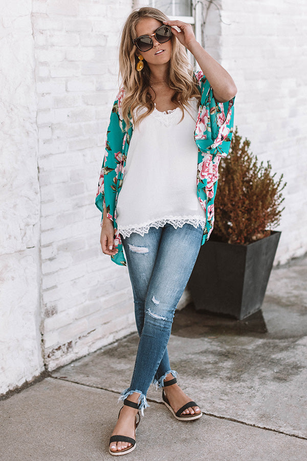 Work the BLOOM girl, this fabulous floral overlay is ready to mix & mingle! The "Garden Mingle Overlay" has short kimono sleeves, a breezy floral printed open front bodice & a tie-front hem. Style this overlay over any of your favorite basics to add a fresh new spin to an old fave.